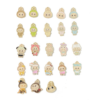 Vente en gros pendentif en alliage plaqué or Labubu Cartoon DIY boucles d'oreilles bracelet porte-clés ensemble d'accessoires gouttes d'huile Anime bijoux